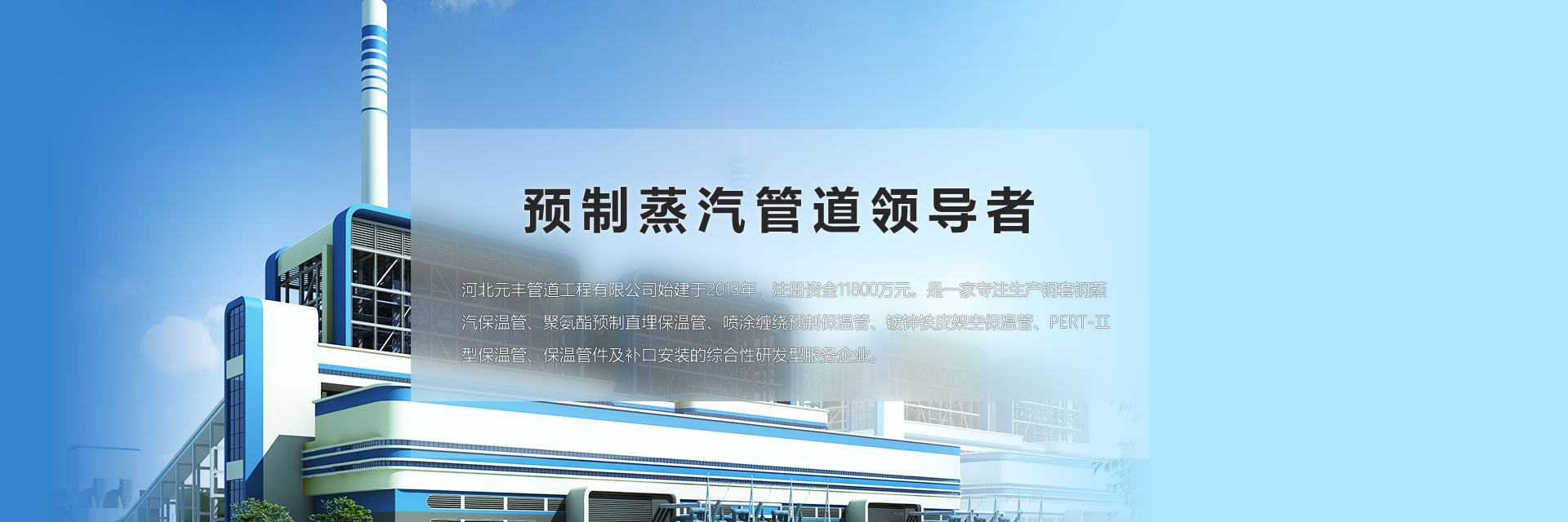 河北元豐管道工程有限公司始建于2013年,注冊(cè)資金11800萬(wàn)元。是一家專注生產(chǎn)鋼套鋼蒸汽保溫管、聚氨酯預(yù)制直埋保溫管、噴涂纏繞預(yù)制保溫管、鍍鋅鐵皮架空保溫管、PERT-Ⅱ型保溫管、保溫管件及補(bǔ)口安裝的綜合性研發(fā)型服務(wù)企業(yè)。